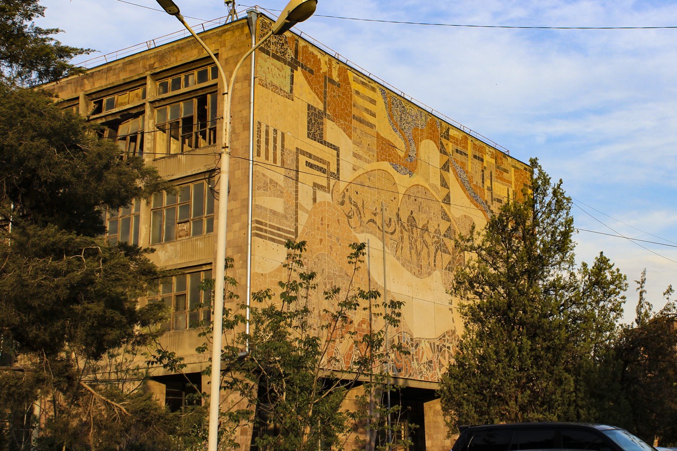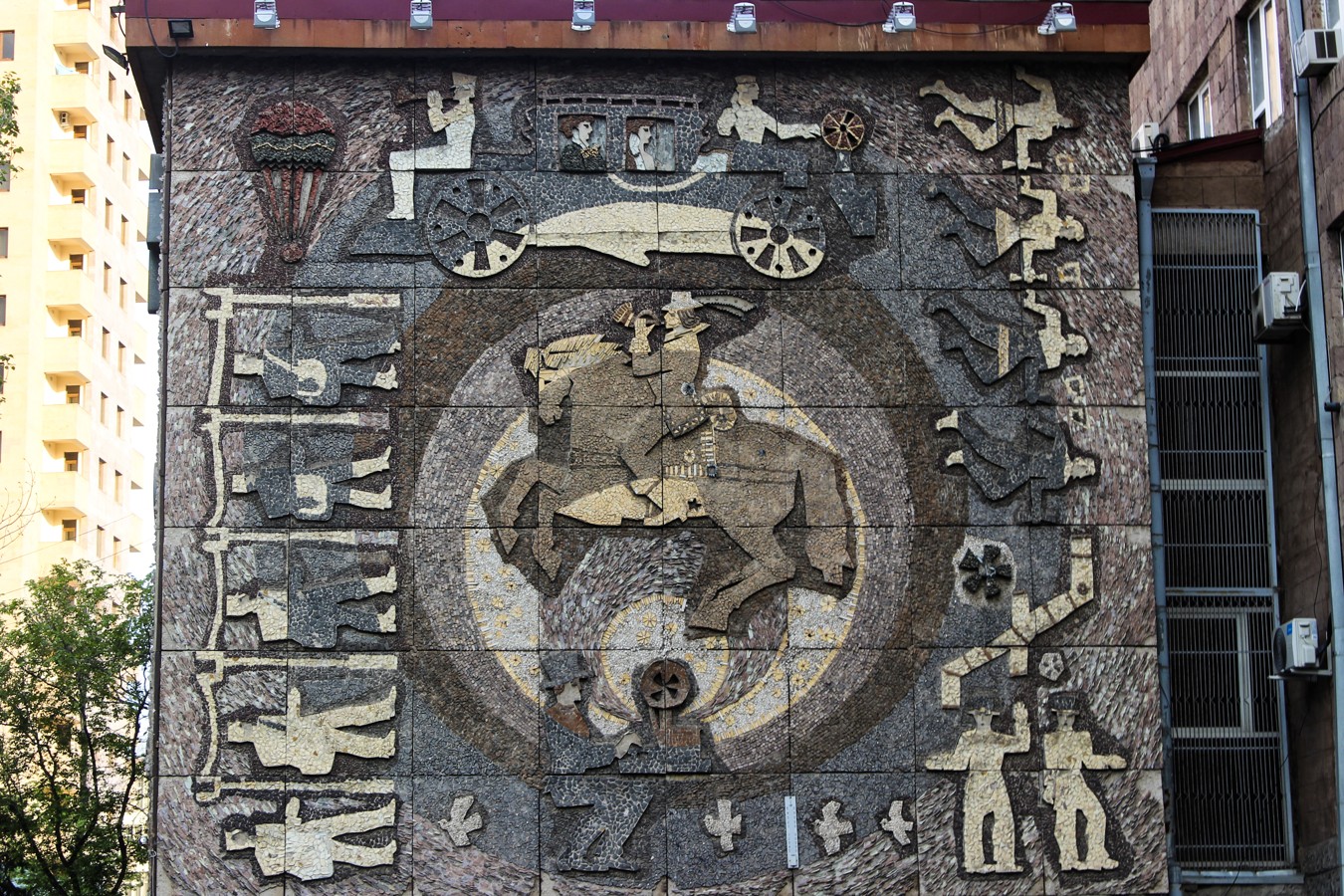 - А также многие другие НИИ, бывшую телефонную станцию и множество рельефов и мозаик, украшающих эти здания