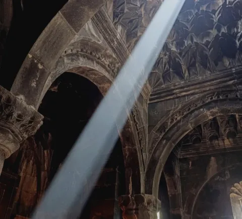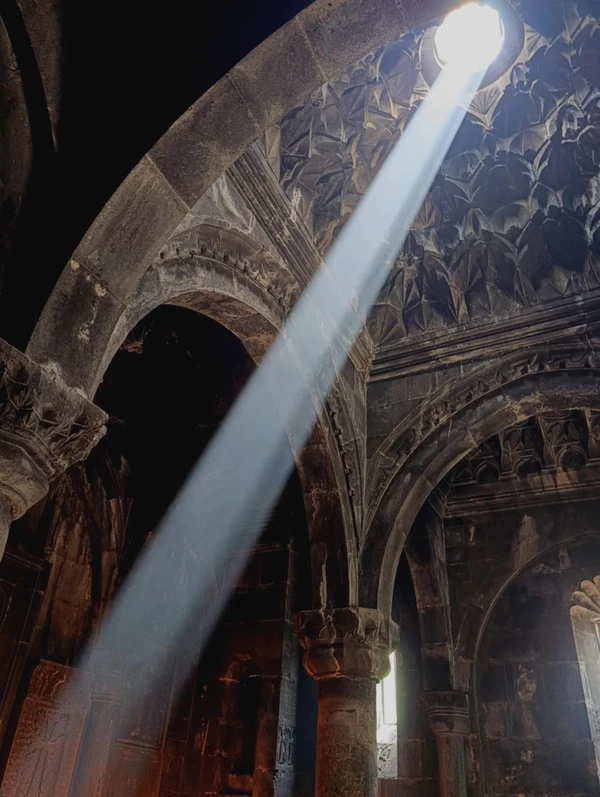 Монастырь Гегард. Здесь течёт святой родник и царит особая тишина. Просторная территория комплекса идеально подходит для неспешной прогулки и вдохновляющих фотографий.