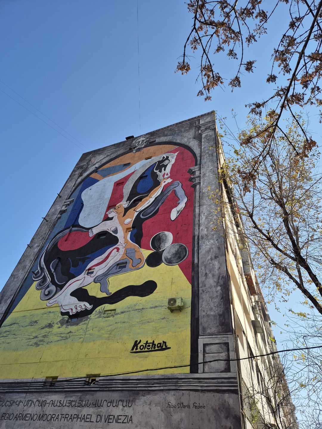 - новый большой мурал авторства итальянского граффитиста — сделан в честь Ерванда Кочара и отражает его вклад в искусство Армении