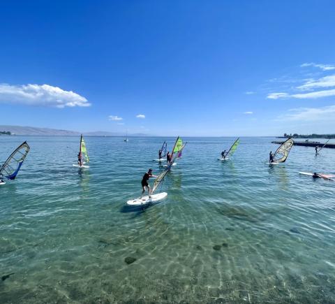 Наши опытные тренеры поставят вас на доску за одно-два занятия, проведут мастер-классы по яхтингу, вязанию морских узлов, виндсерфингу, сапу.