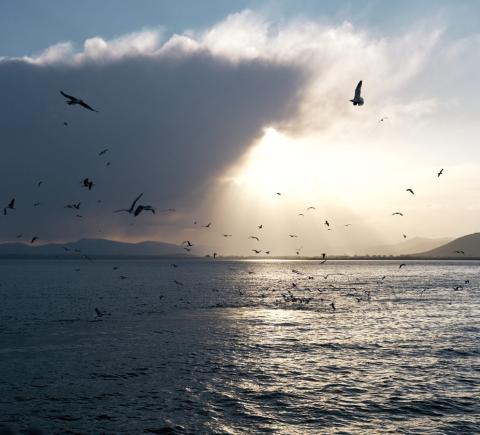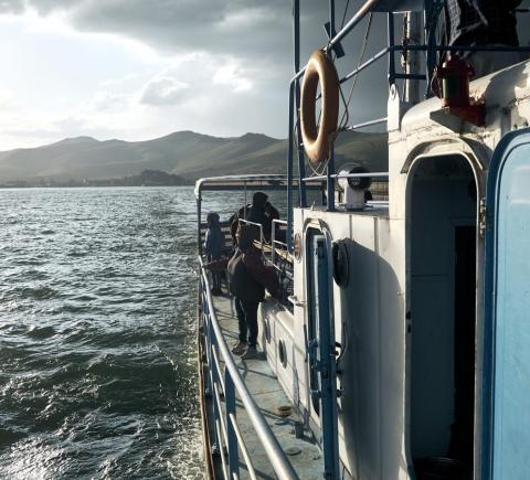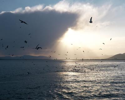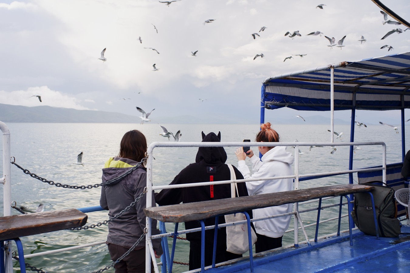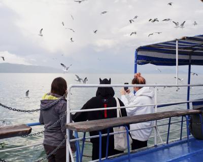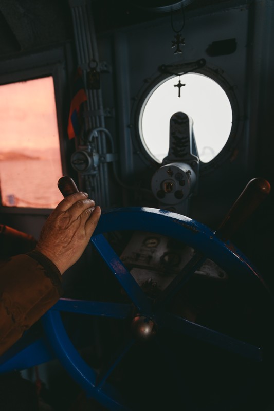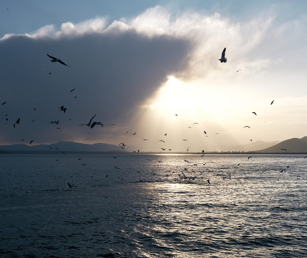 - Затем на кораблике совершим часовую обзорную прогулку по Севану. С палубы будет виден Гегамский хребет, сам полуостров и акватория Малого Севана. Представьте себе — чайки фотогенично кружат вокруг, солнце красиво освещает происходящее предзакатными лучами. Умиротворение как оно есть!